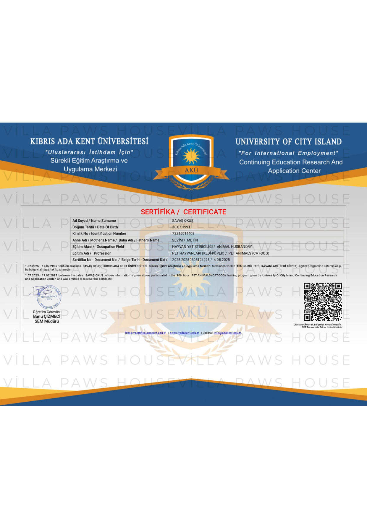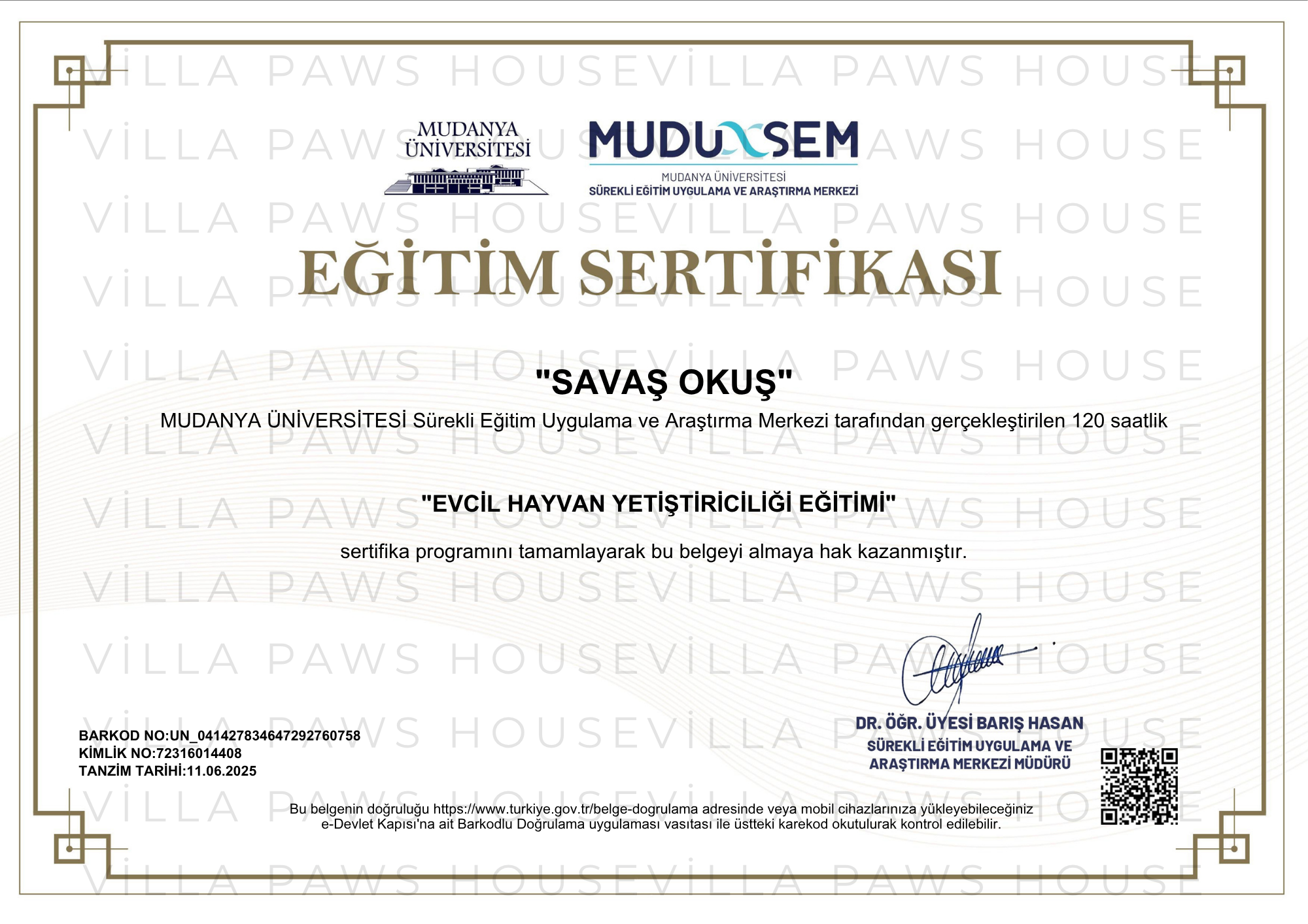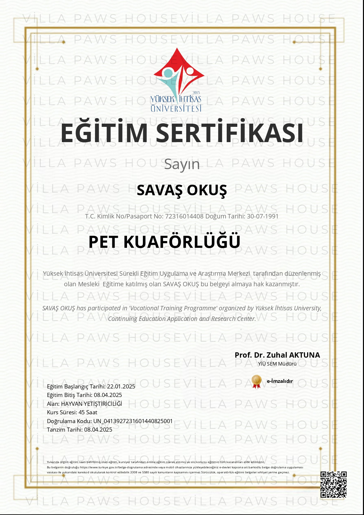 EĞİTİM SERTİFİKASI